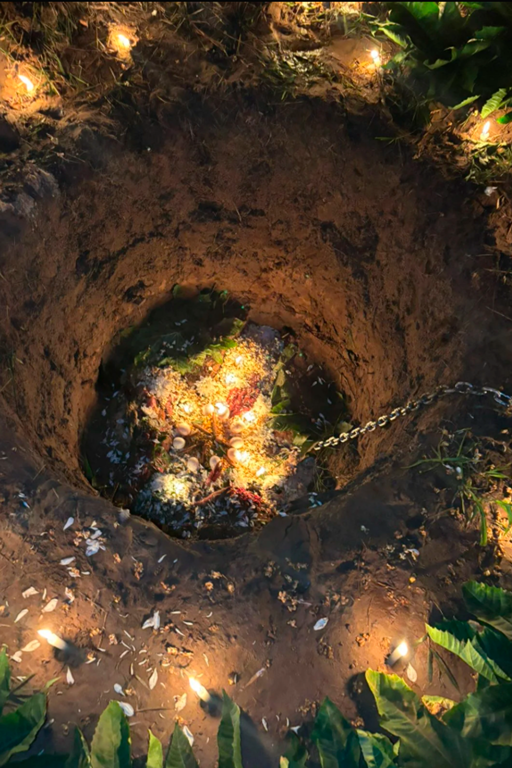 Foi realizado o preceito dedicado aos Pais da Rua e aos Exus da Casa, com o propósito de firmar, fortalecer e harmonizar as entidades que regem a propriedade. Essa obrigação espiritual teve como finalidade estruturar e assegurar a sustentação energética do espaço, criando uma base sólida para que os futuros trabalhos ali realizados ocorram com firmeza, proteção e alinhamento, respeitando os fundamentos e a força das entidades que ali atuam. Dando como finalizado a construção do monumento e pronto para sua grande inauguração.